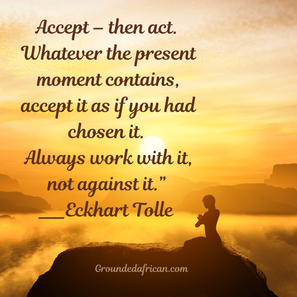 “Accept – then act. Whatever the present moment contains, accept it as if you had chosen it. Always work with it, not against it.”