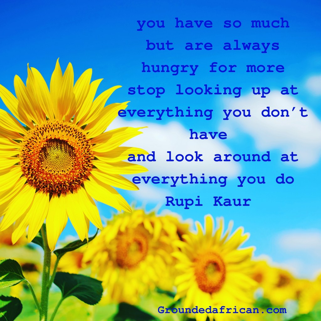 stop looking up at everything you don’t have and look around at everything you do”