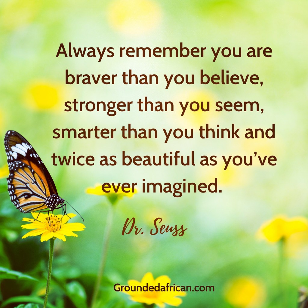 “Always remember you are braver than you believe, stronger than you seem, smarter than you think and twice as beautiful as you’ve ever imagined.”