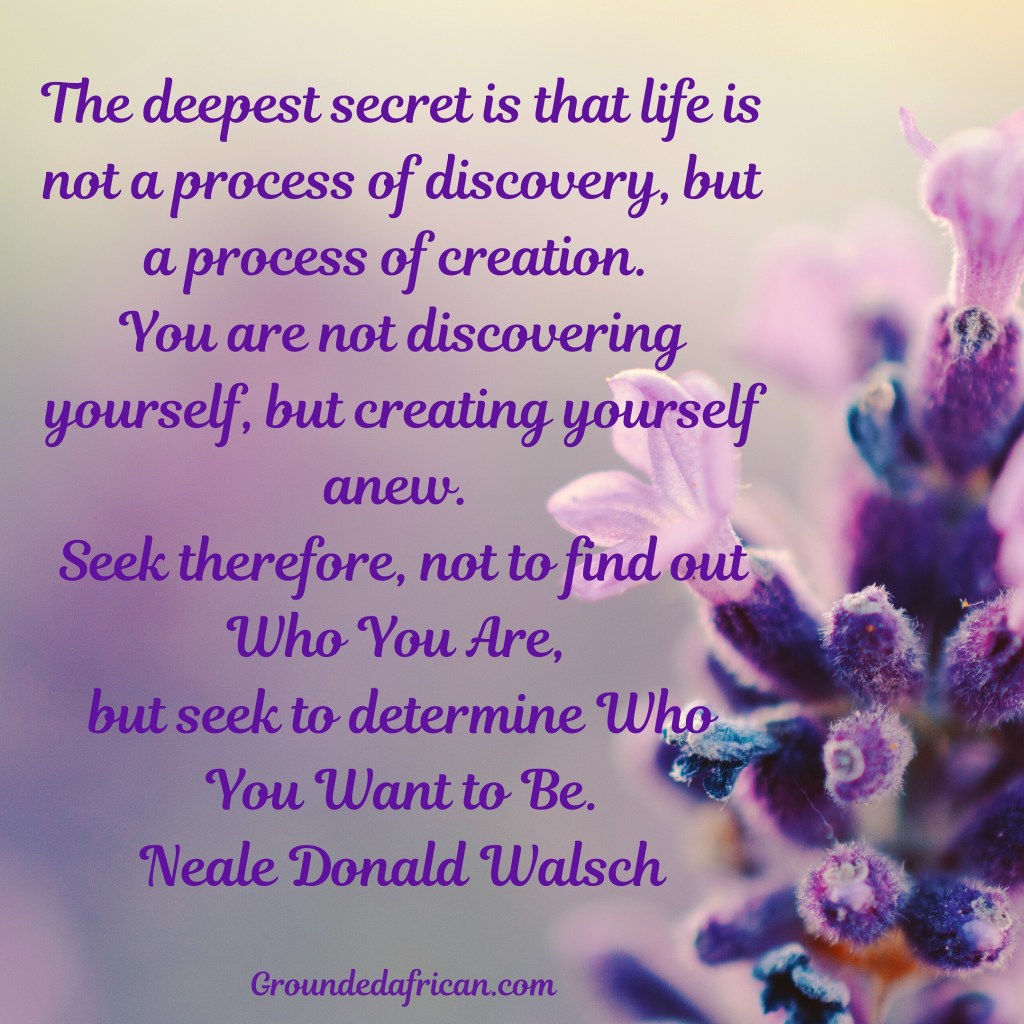 “The deepest secret is that life is not a process of discovery, but a process of creation. You are not discovering yourself, but creating yourself anew. Seek therefore, not to find out Who You Are, but seek to determine Who You Want to Be.”