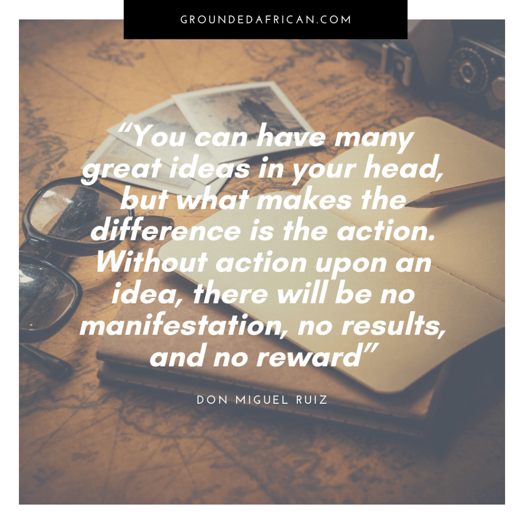 “You can have many great ideas in your head, but what makes the difference is the action. Without action upon an idea, there will be no manifestation, no results, and no reward”