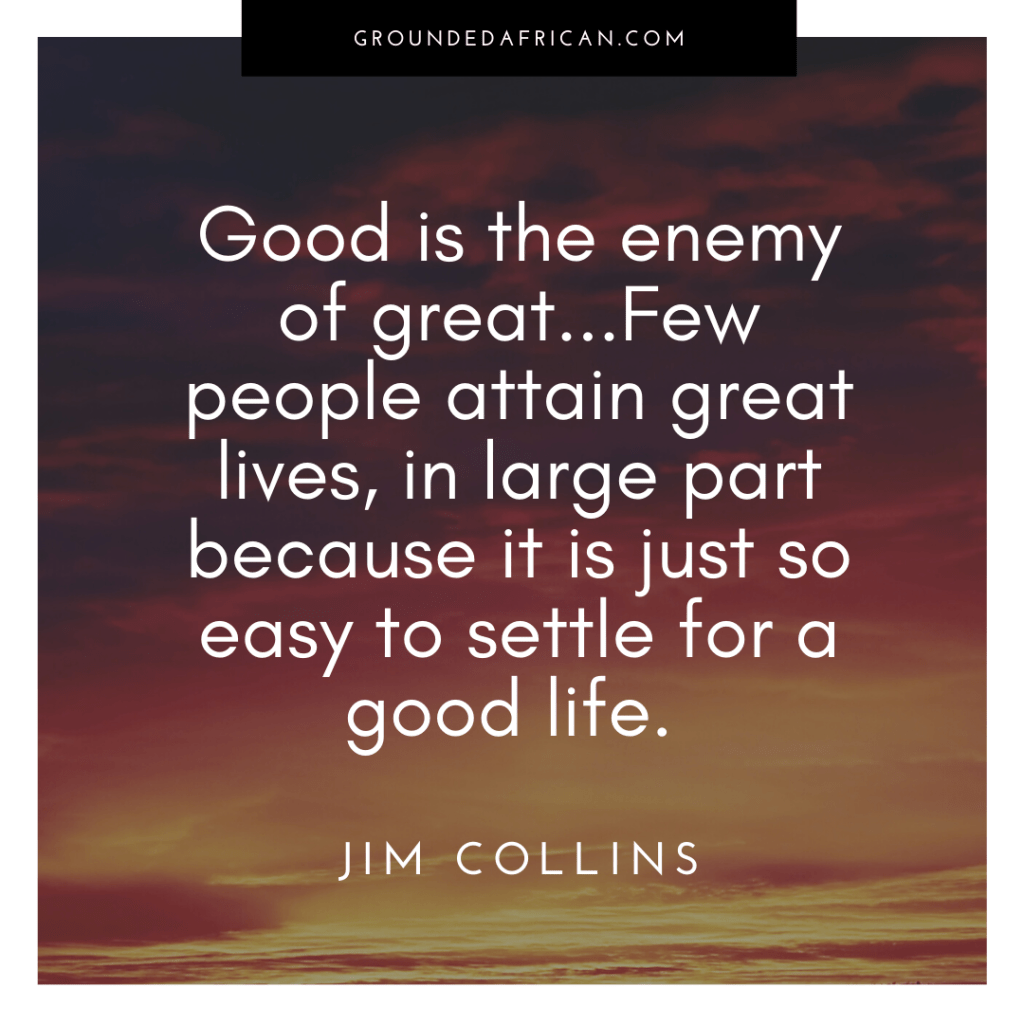 “Good is the enemy of great. And that is one of the key reasons why we have so little that becomes great. Few people attain great lives, in large part because it is just so easy to settle for a good life.”