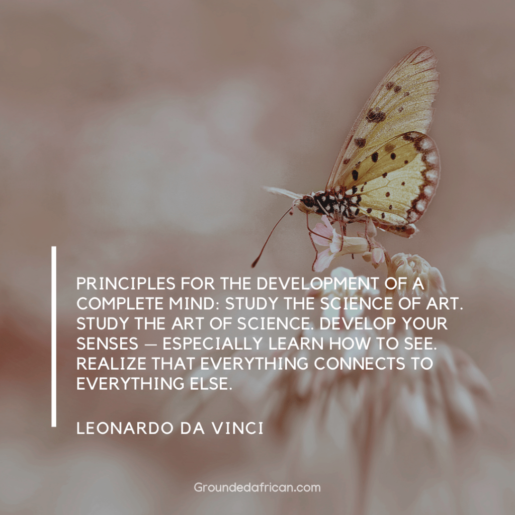 “Principles for the Development of a Complete Mind: Study the science of art. Study the art of science. Develop your senses — especially learn how to see. Realize that everything connects to everything else.”