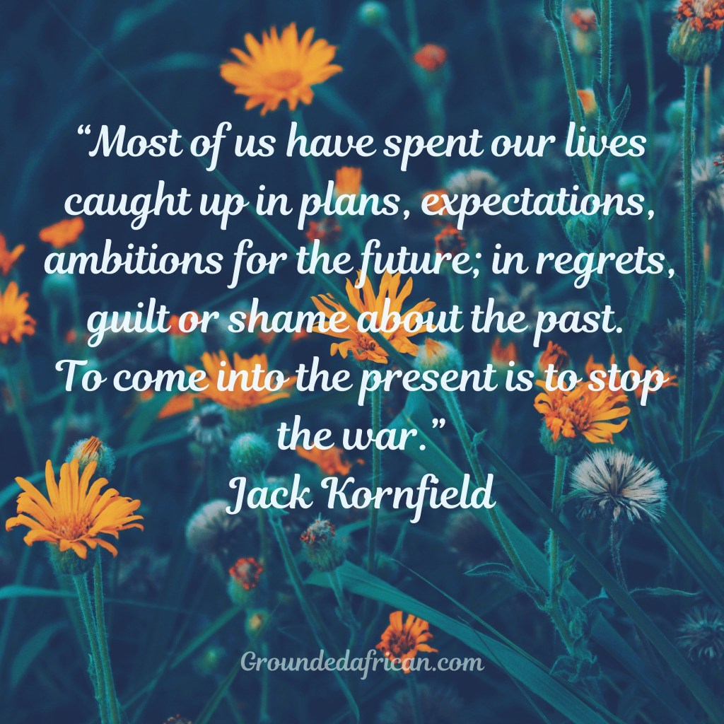 “Most of us have spent our lives caught up in plans, expectations, ambitions for the future; in regrets, guilt or shame about the past. To come into the present is to stop the war.”