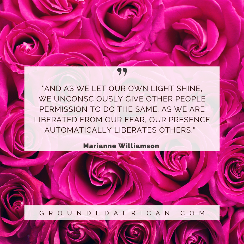 “And as we let our own light shine, we unconsciously give other people permission to do the same. As we are liberated from our fear, our presence automatically liberates others.”