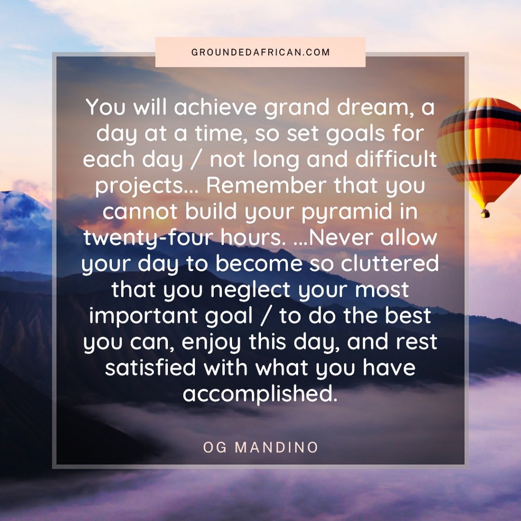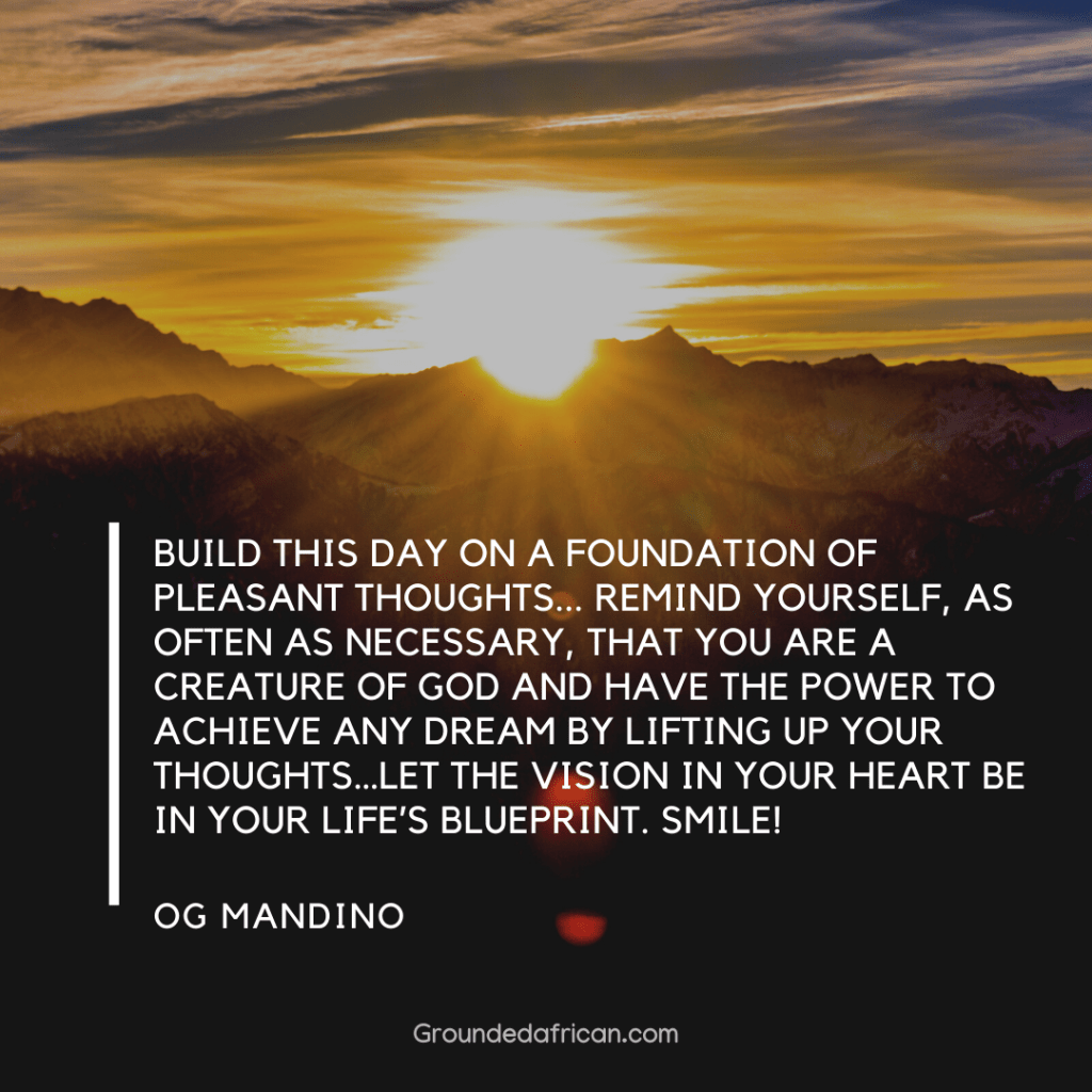 “Build this day on a foundation of pleasant thoughts… Remind yourself, as often as necessary, that you are a creature of God and have the power to achieve any dream by lifting up your thoughts…Let the vision in your heart be in your life’s blueprint. Smile!”